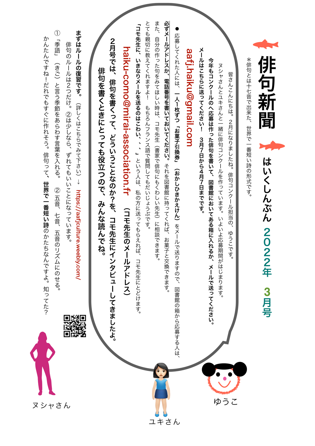 vous pourrez voter pour vos huit haïkus favoris en indiquant votre adresse mail enregistrée auprès de l’AAFJ.
