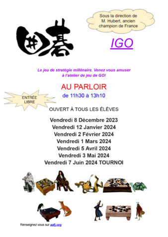 La prochaine séance de l’atelier d’Igo aura lieu le vendredi 2 Février 2024.
